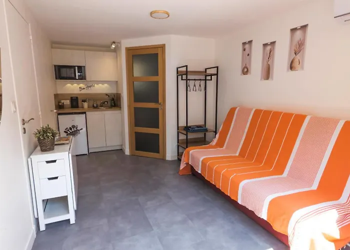 Studio privé avec entrée indépendante lägenhet ligger ca 3 km från Valescure Golfklubb. Denna lägenhet har 1 sovrum och 1 badrum.